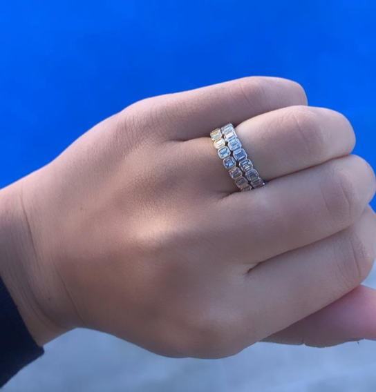 14k Gold Bezel Emerald 10 Pointers Eternity Band