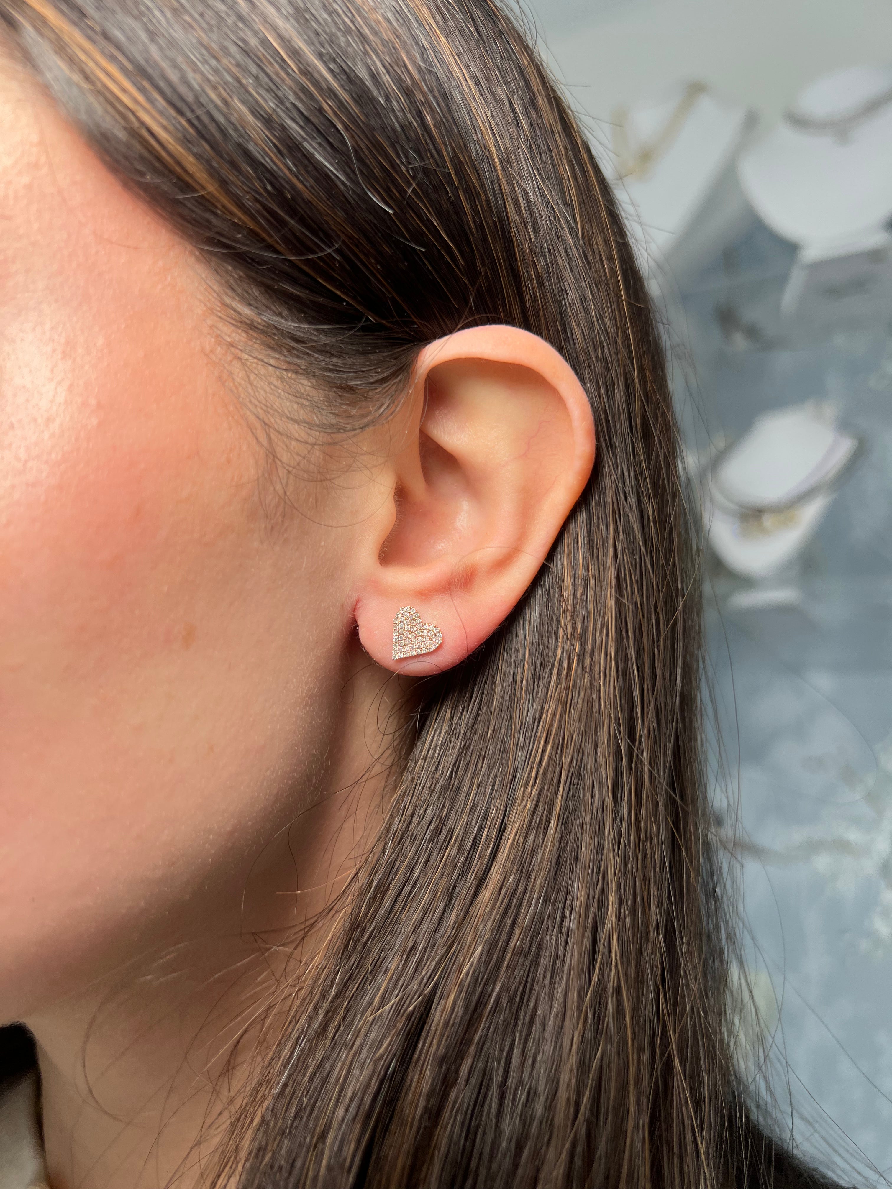 14k Gold Diamond Pave Heart Studs