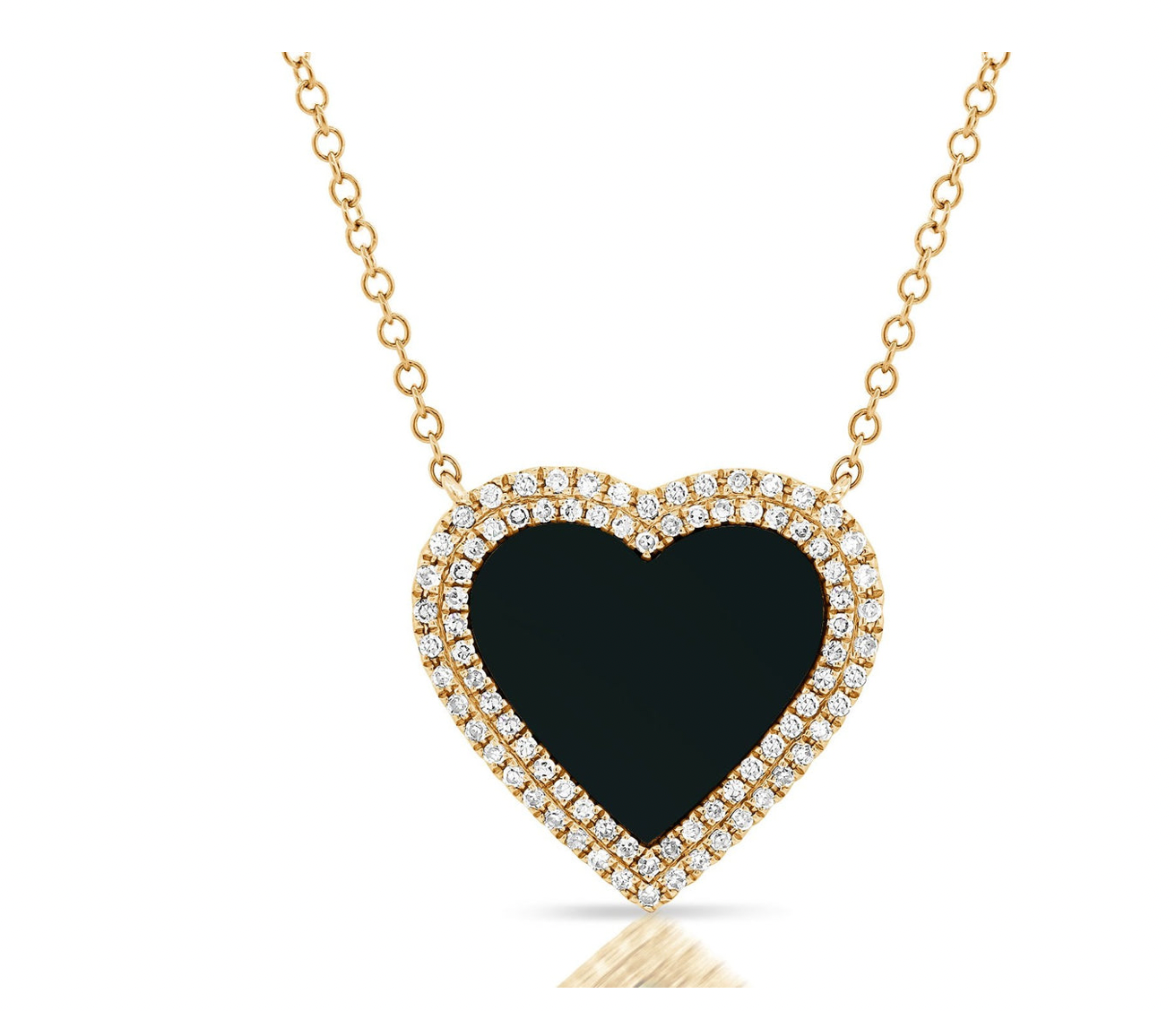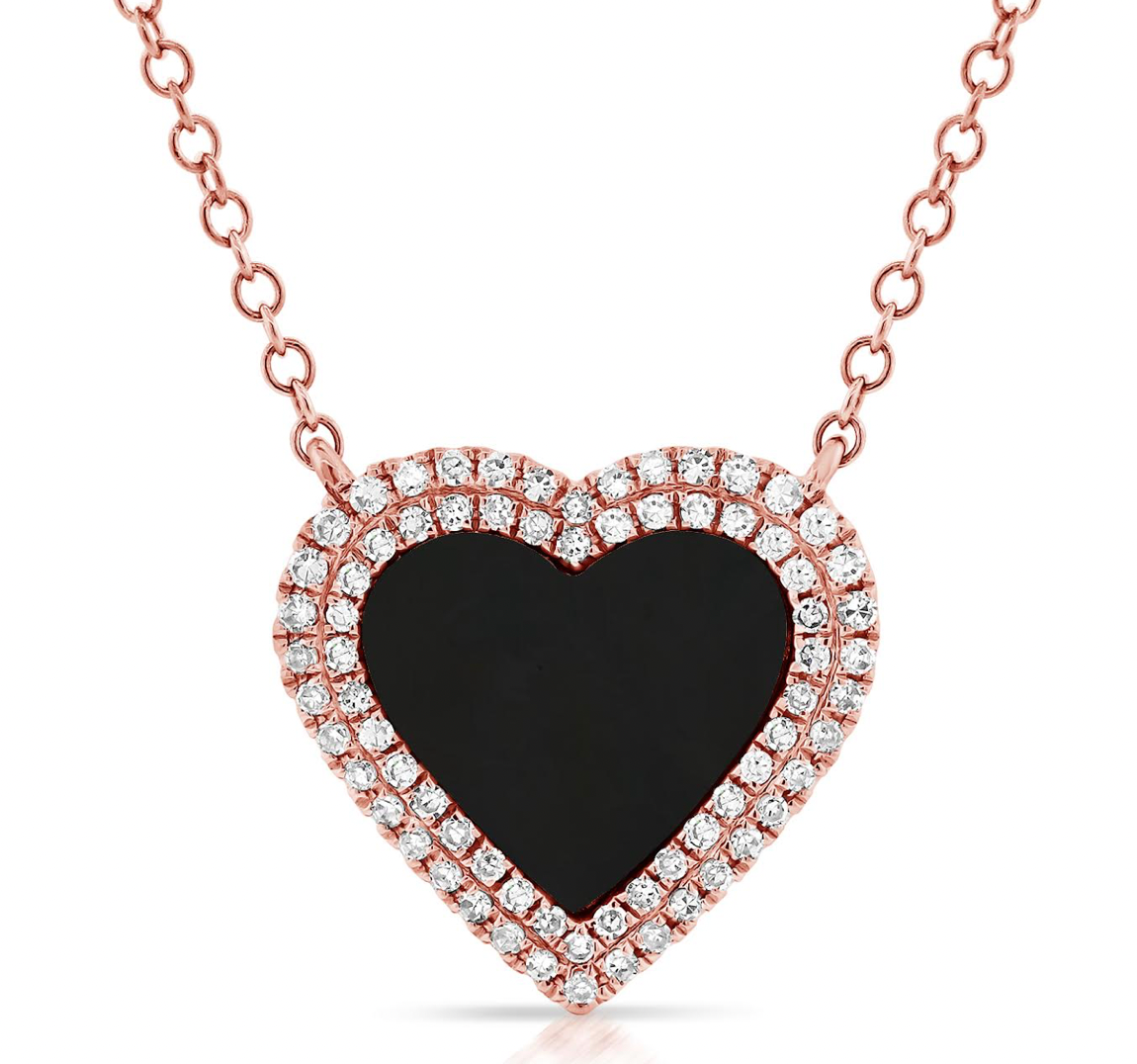 14k Gold Diamond and Onyx Sara Heart Necklace