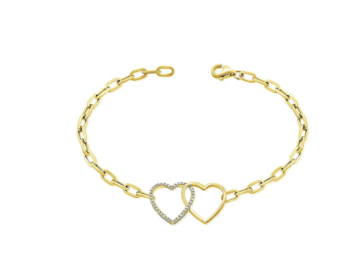 14K GOLD DIAMOND DOUBLE HEART CHAIN BRACELET