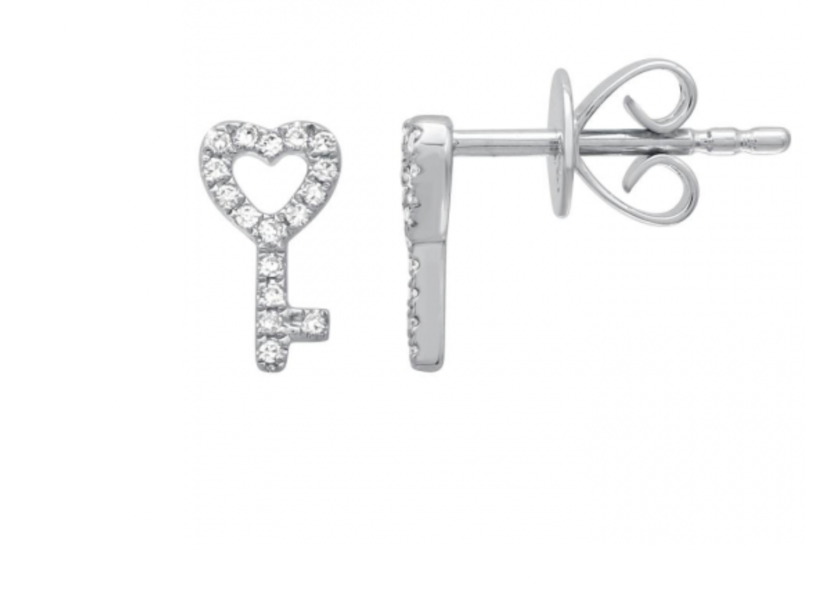14k Gold Diamond Key to My Heart Studs