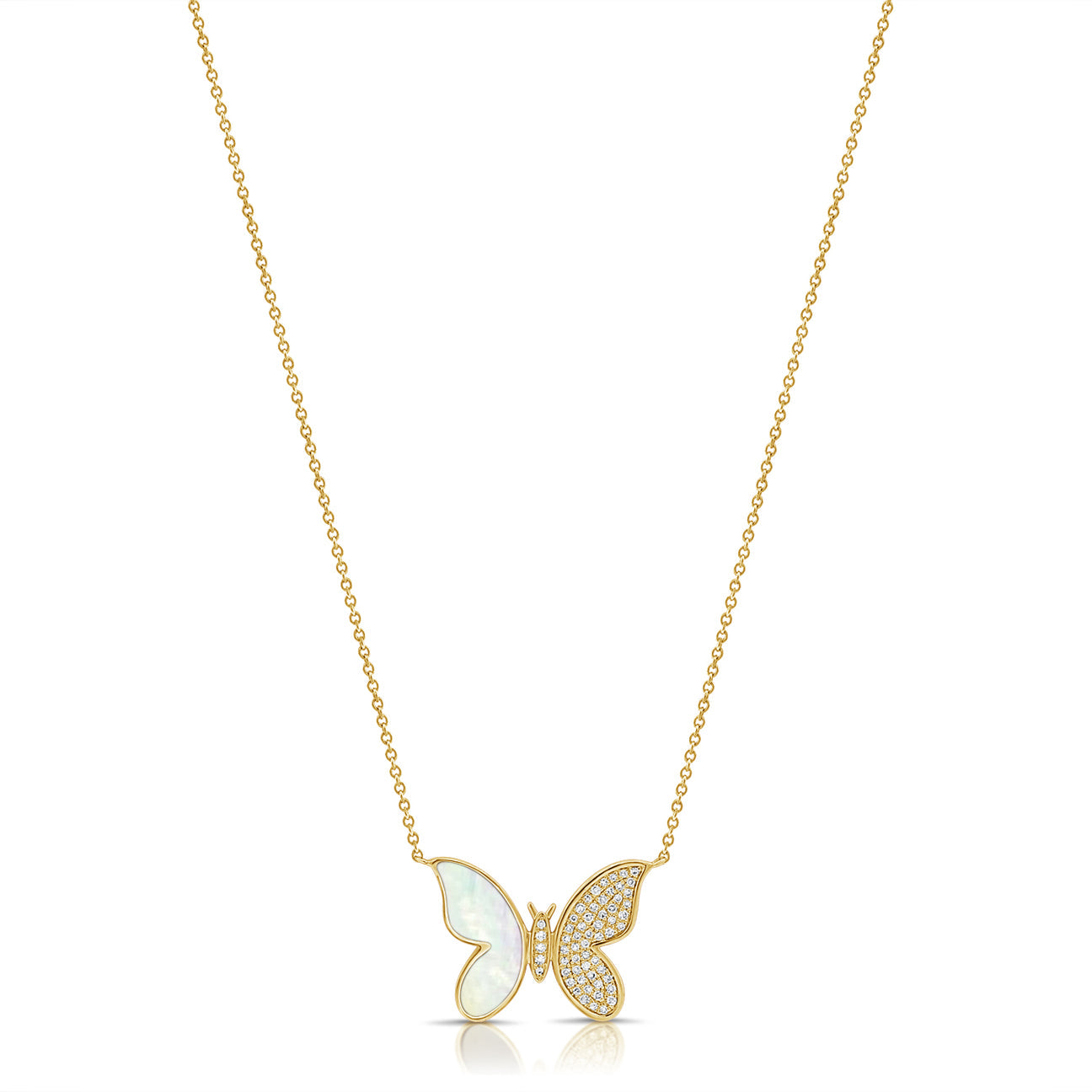 14k Gold Diamond & Mother of Pearl Butterfly Necklace