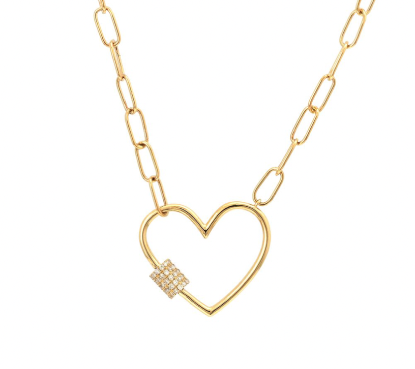 14k Gold Diamond Paperclip Brooke Heart Necklace