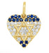 14K Gold Diamonds & Sapphires Israel Flag Heart Pendant