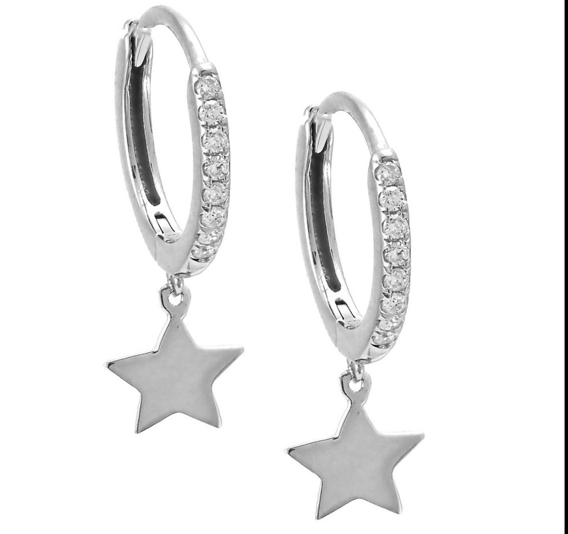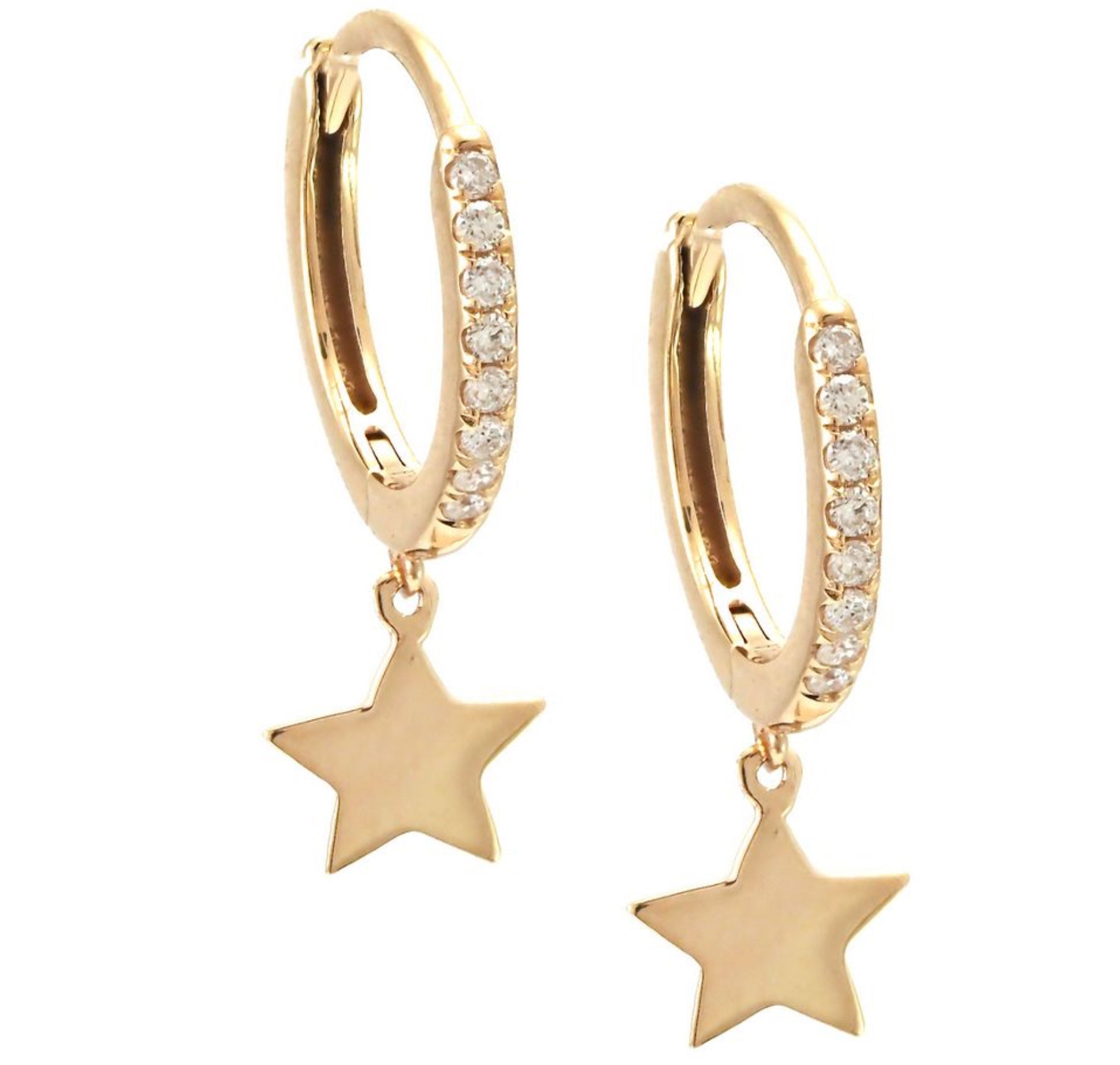 14K Gold Fashion Full Micro Pave Star Diamond Huggie Earrings