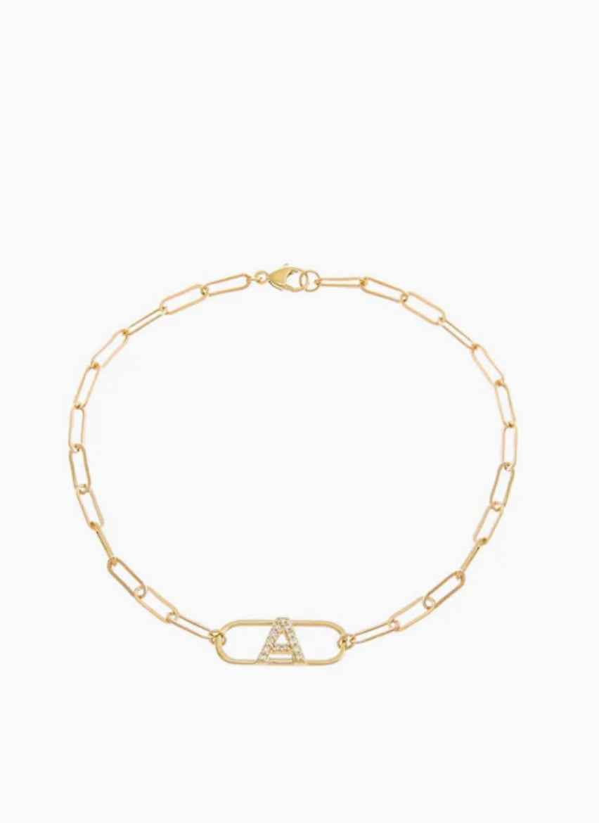 14k Link Initial Paperclip Bracelet