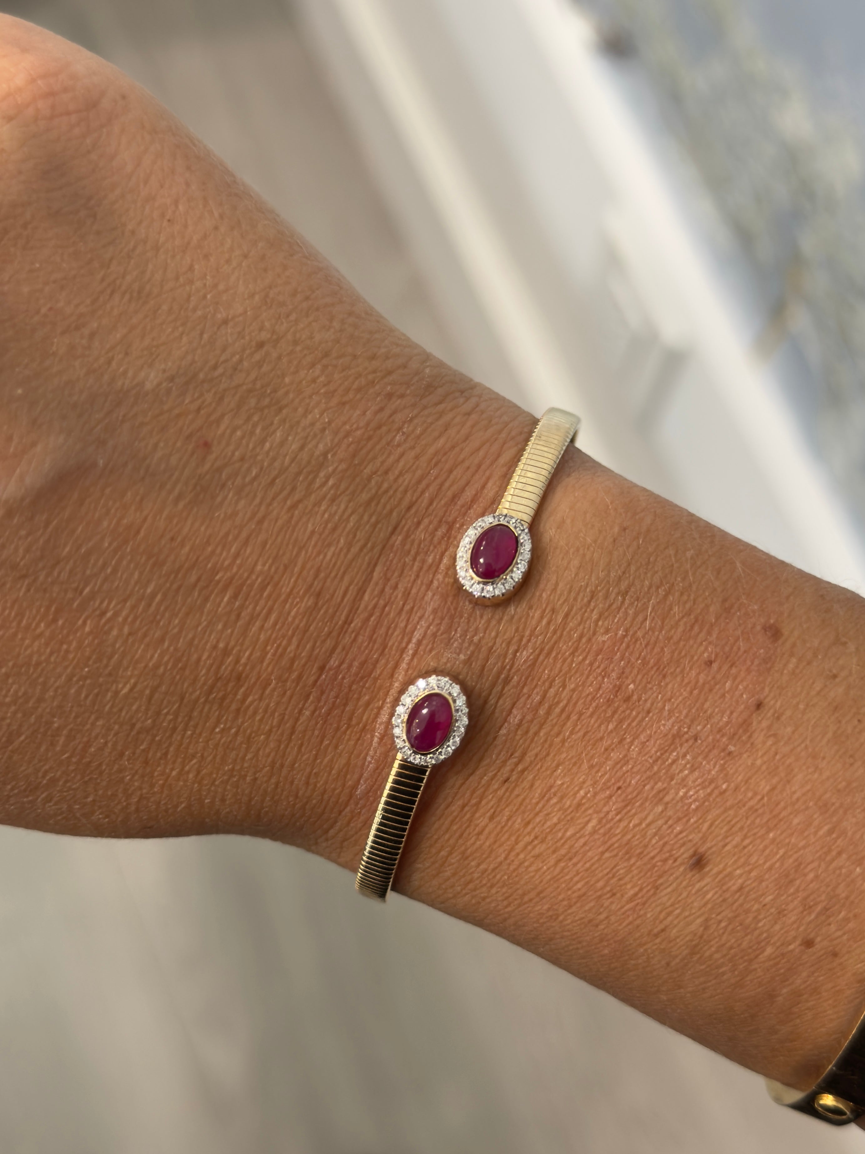 14K Small Ruby Fluted Bangle