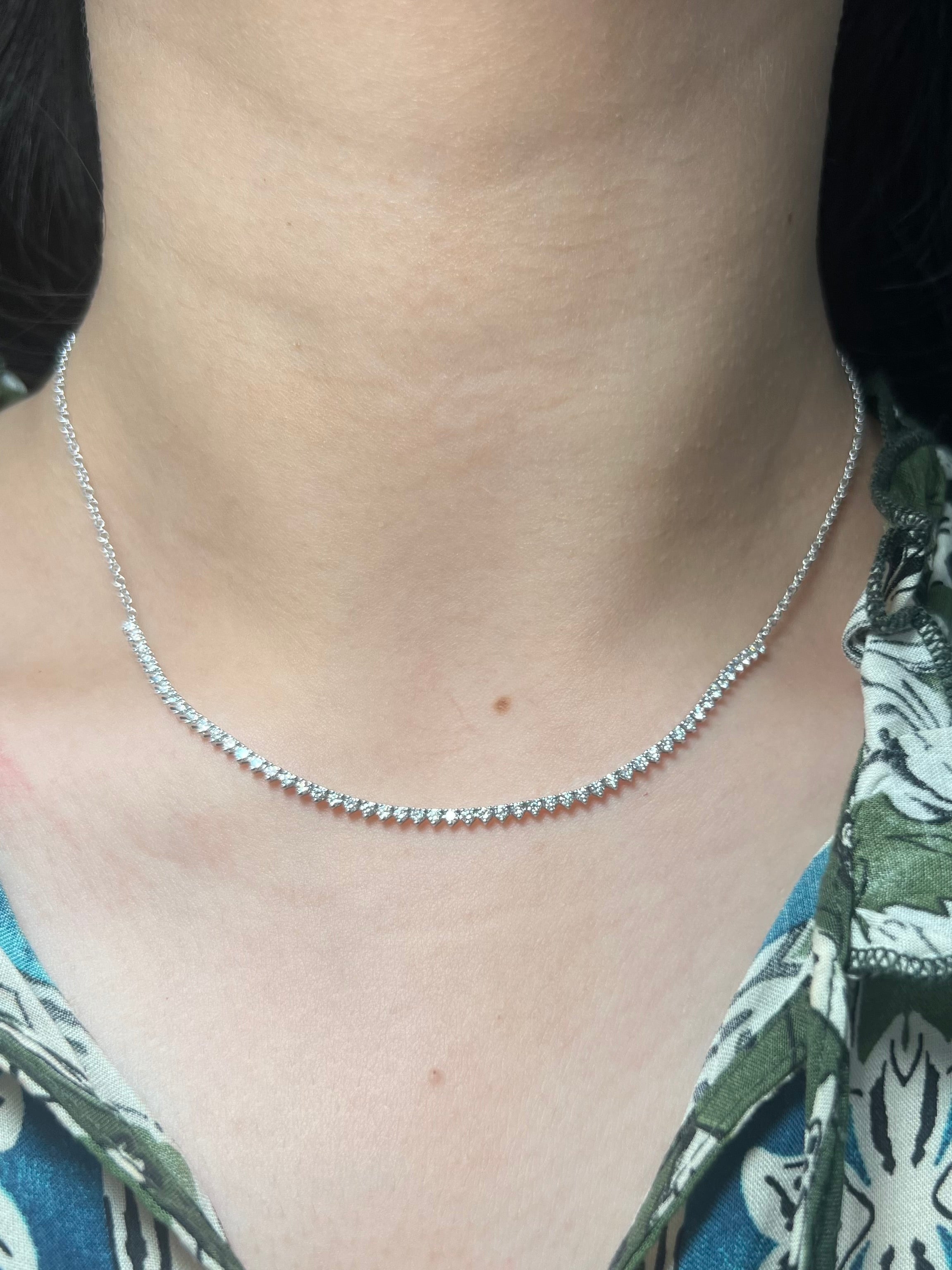 14k White Gold 3 Prongs Setting Diamond Tennis Chain Necklace