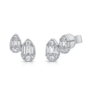 14K White Gold Baguette and Diamond Pear Stud Earrings