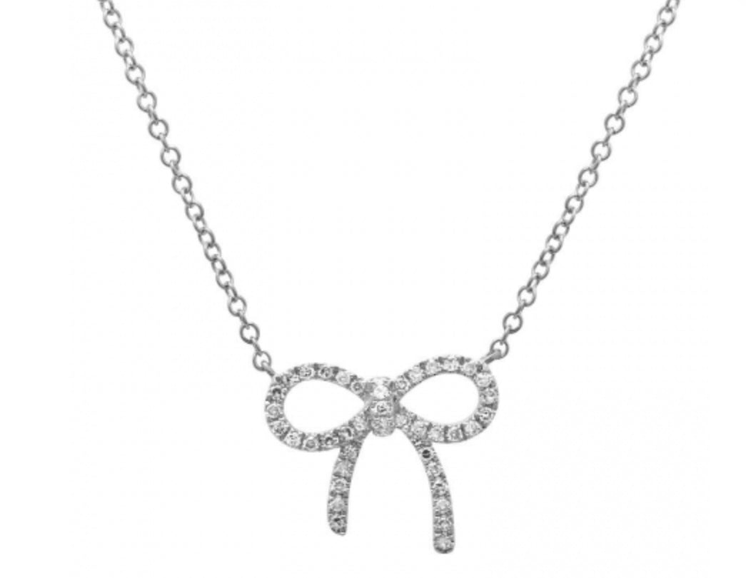 14k White Gold Bow Diamond Necklace