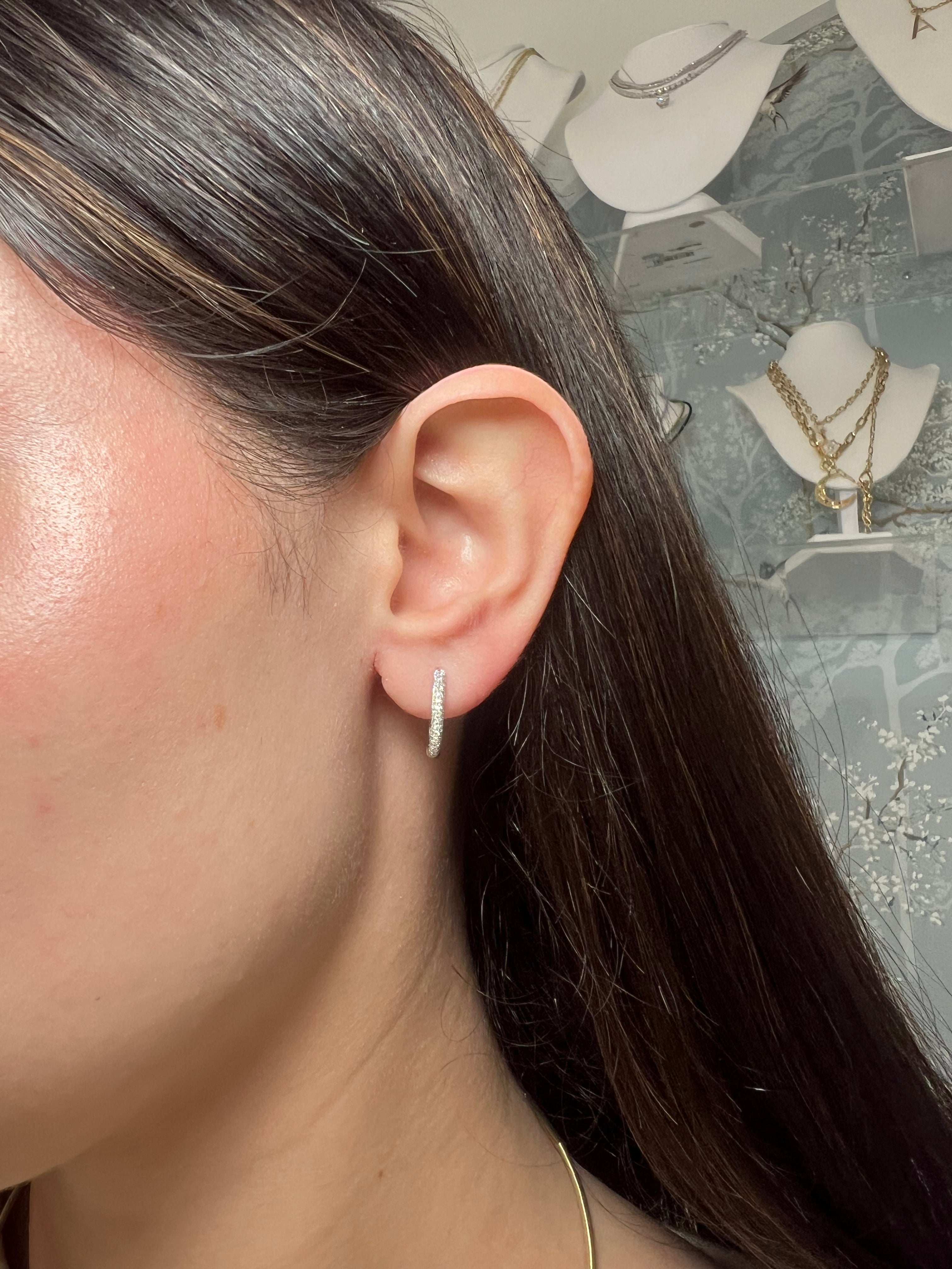 14k White Gold Diamond Huggie Earrings