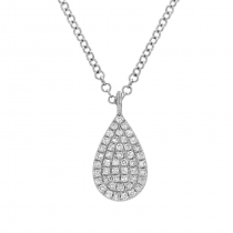 14k White Gold Pave Diamond Pear Shaped Necklace
