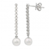 14k White Gold Pearl & Crown Prong Tennis Diamond Earrings