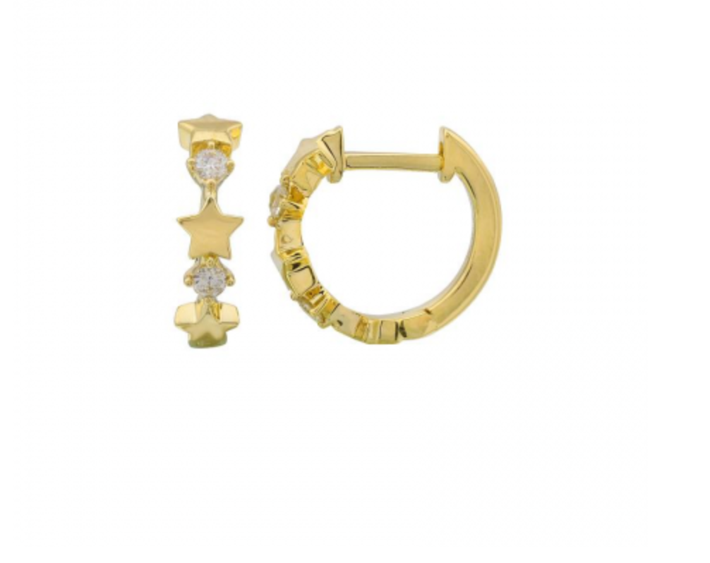 14k Yellow Gold Alternating Star and Diamond Huggie