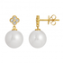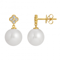14k Yellow Gold Diamond Clover Pearl Earrings