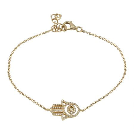 14k Yellow Gold Diamond Hamsa Bracelet