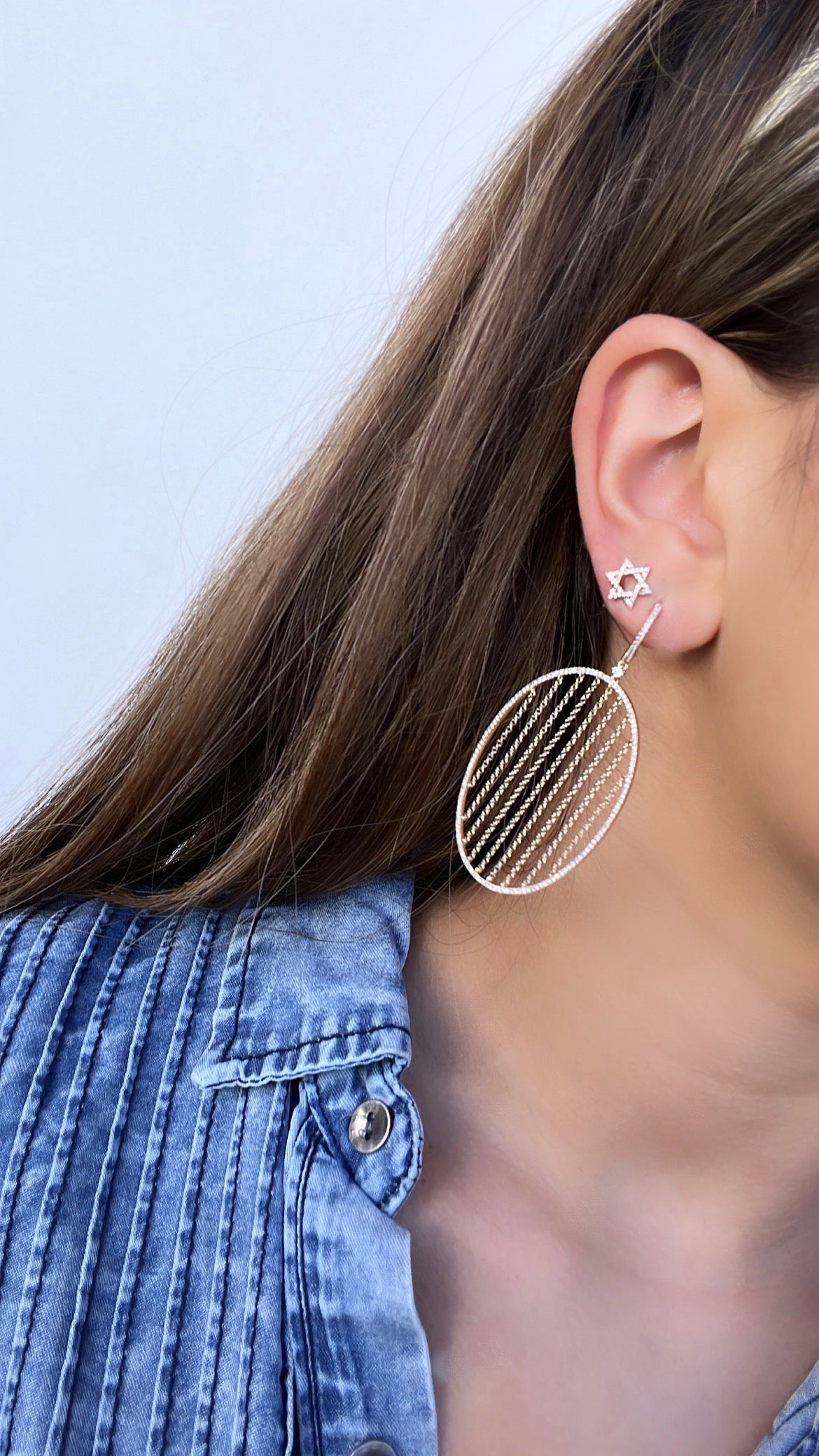 14k Yellow Gold Diamond Large Oval Earrings