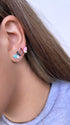 14k Yellow Gold Diamond Pink Enamel Ruby Butterfly Studs