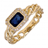 14k Yellow Gold Emerald Cut Sapphire Cuban Link Chain Ring