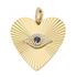 14k Yellow Gold Lines / Fluted Evil Eye Heart Necklace Charm