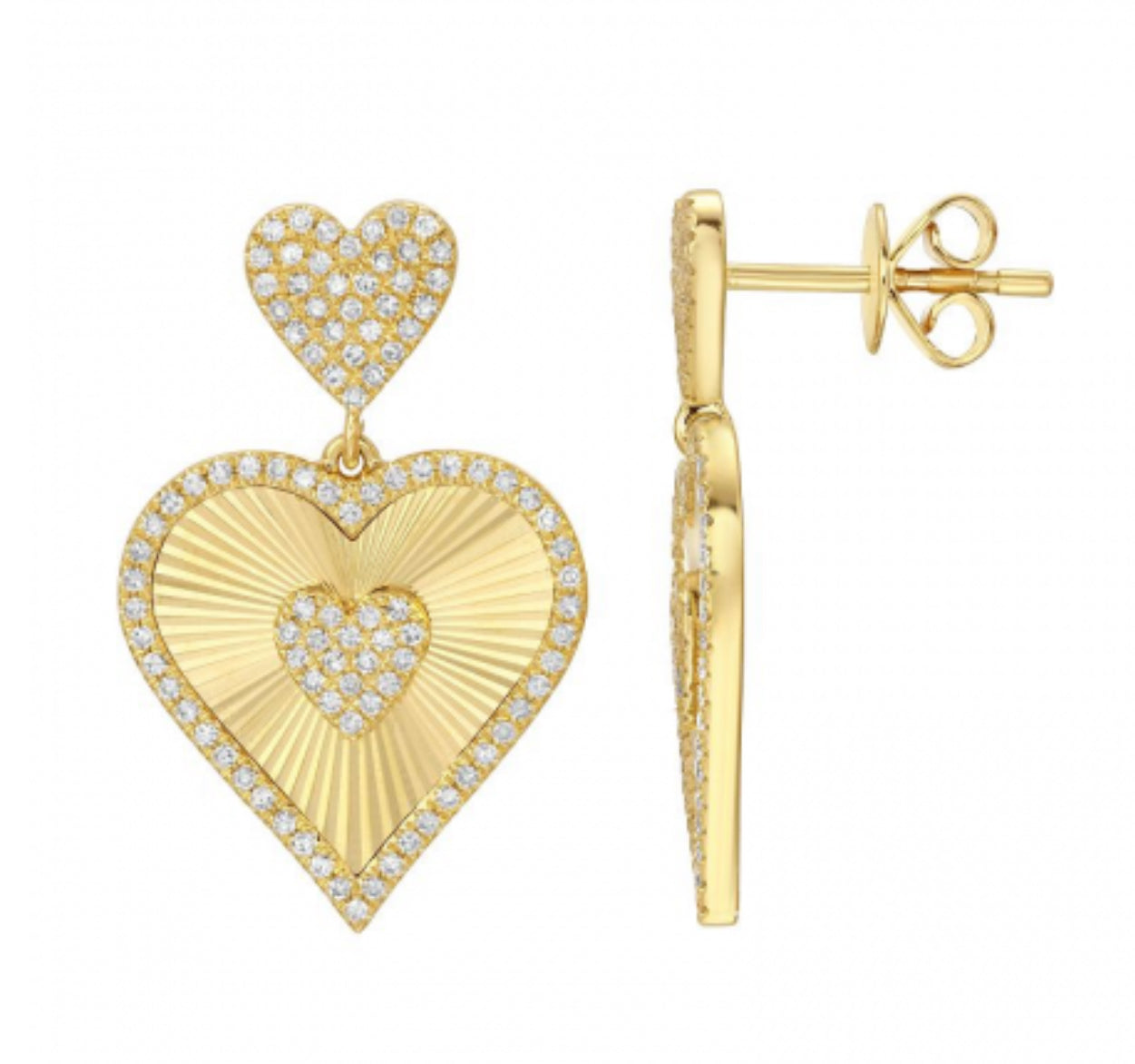 14k Yellow Gold Lines / Fluted Heart Diamond Earrings