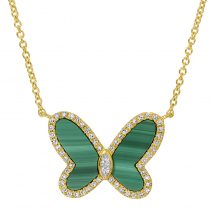 14k Yellow Gold Malachite Butterfly Diamond Necklace