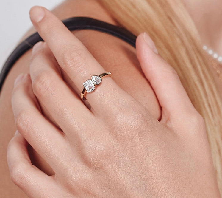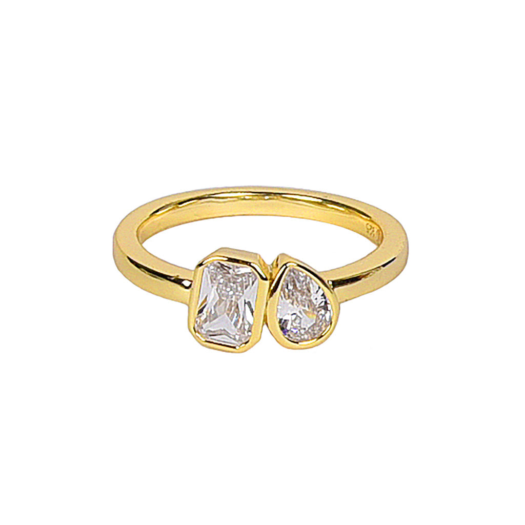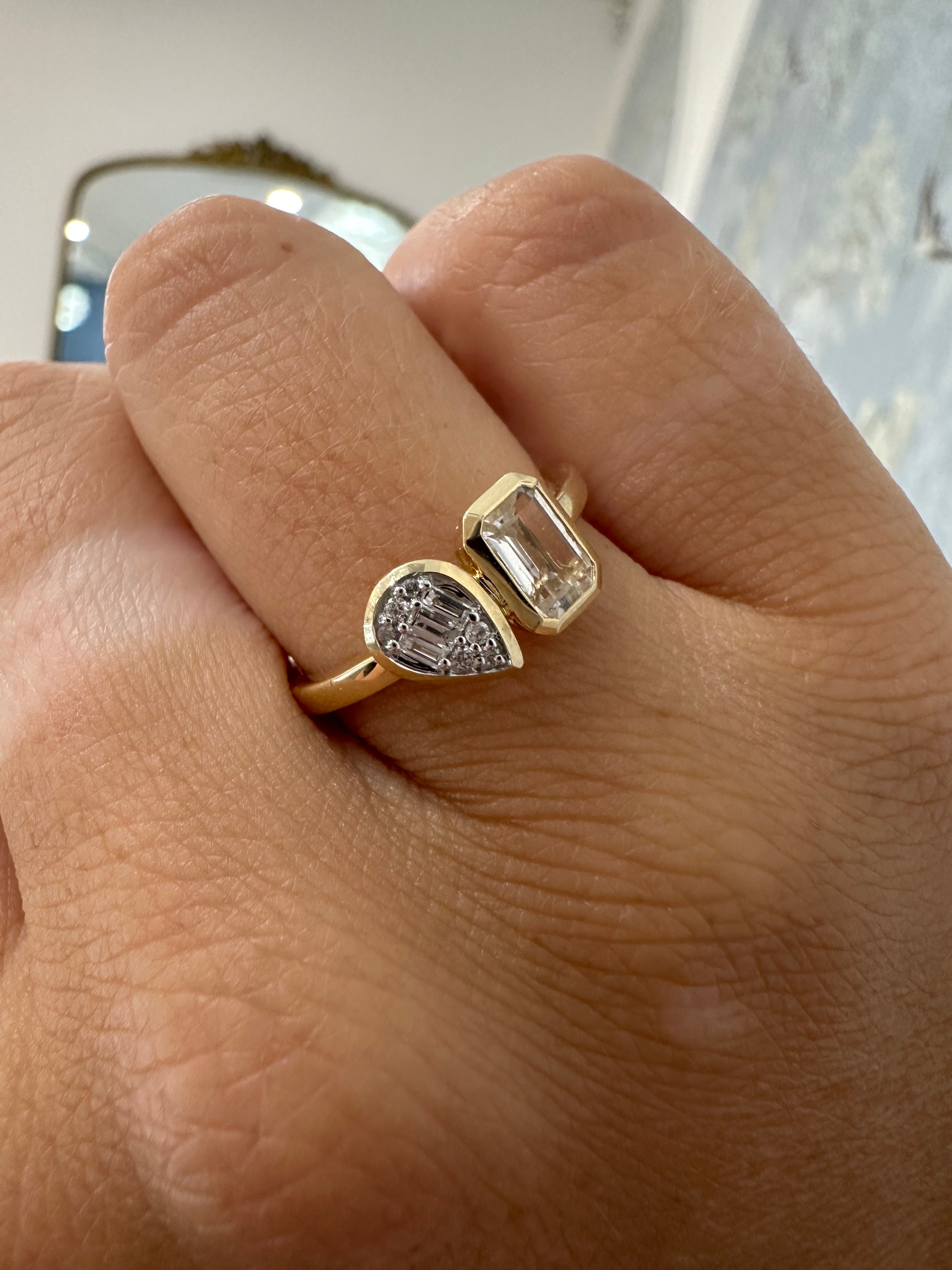 14k Yellow Gold Pear and Emerald Double Stone Ring