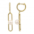 14k Yellow Gold Pearl Diamond Huggie Earrings