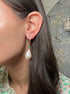 14k Yellow Gold Pearl, Ruby, and Emerald Drop Earrings