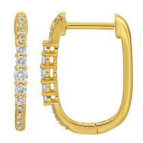 14k Yellow Gold Rectangle Diamond Huggie Earrings