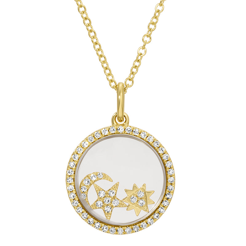 14k Yellow Gold Sapphire Crystial Diamond Necklace