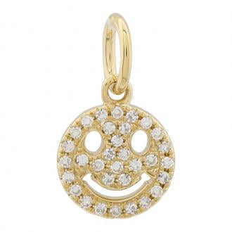 14k Yellow Gold Smiley Face Diamond Necklace Charm