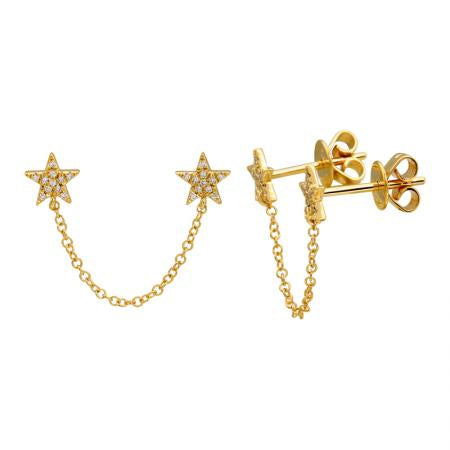 14k Yellow Gold Stars Diamond Double Stud Earring