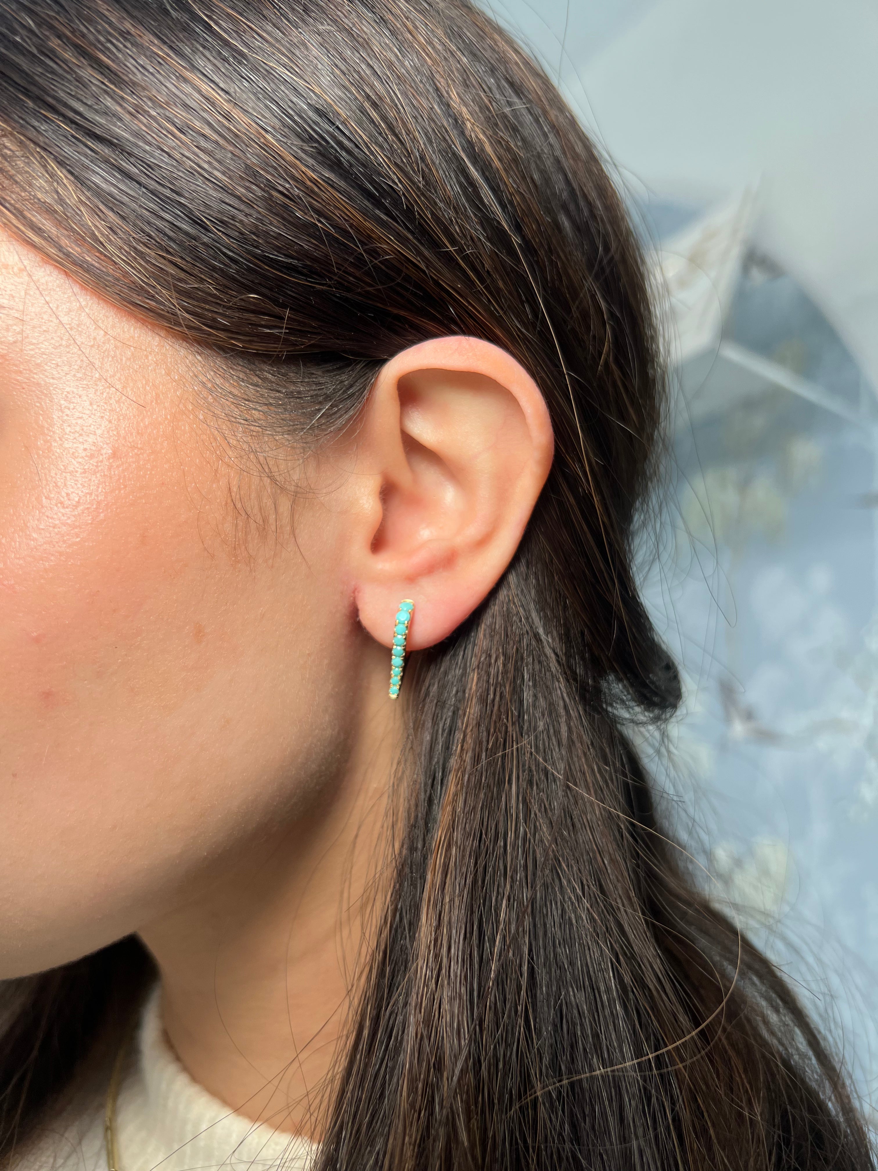 14k Yellow Gold Turquise Spike Huggie Earrings