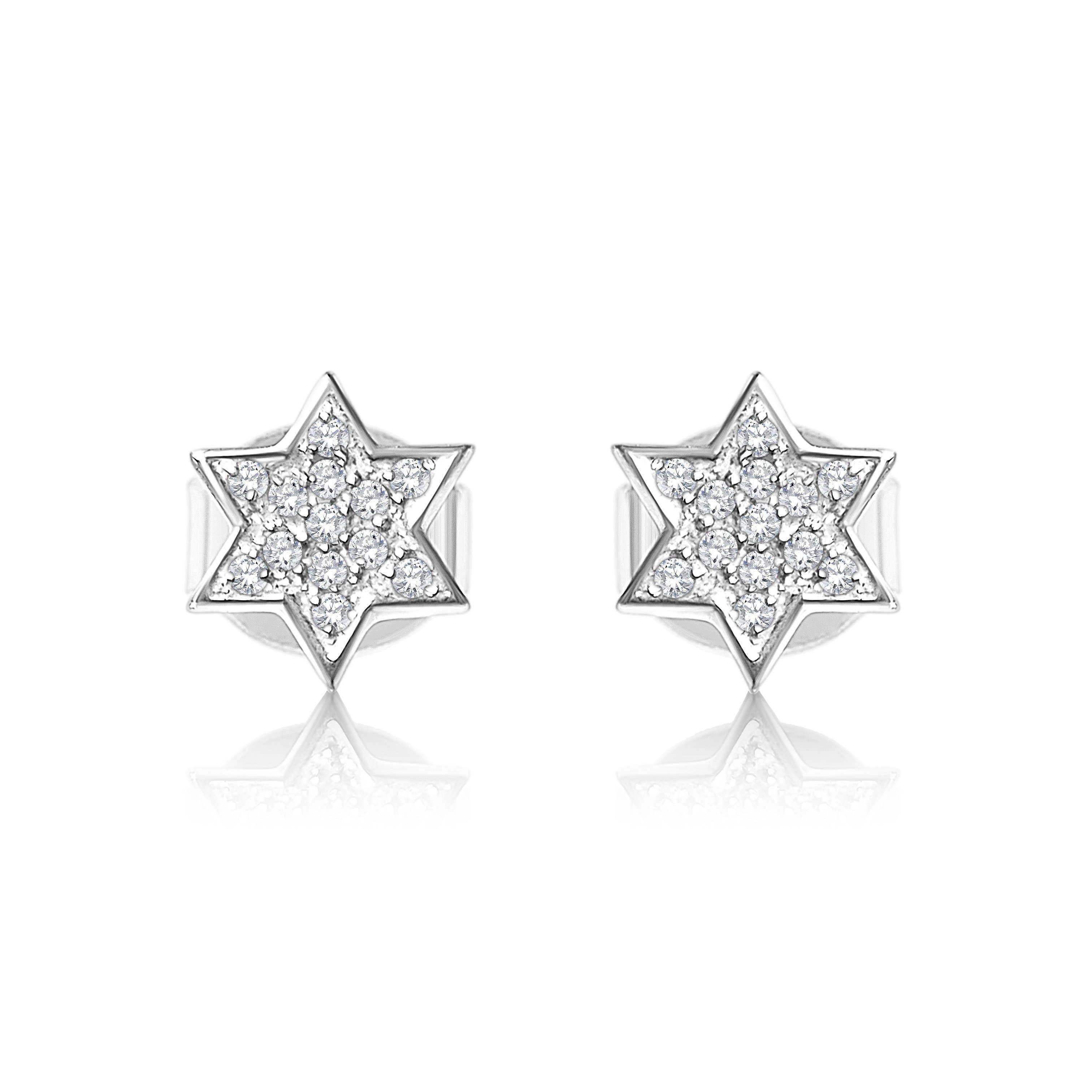 Diamond Star of David earrings in 14k gold. 5mm in size