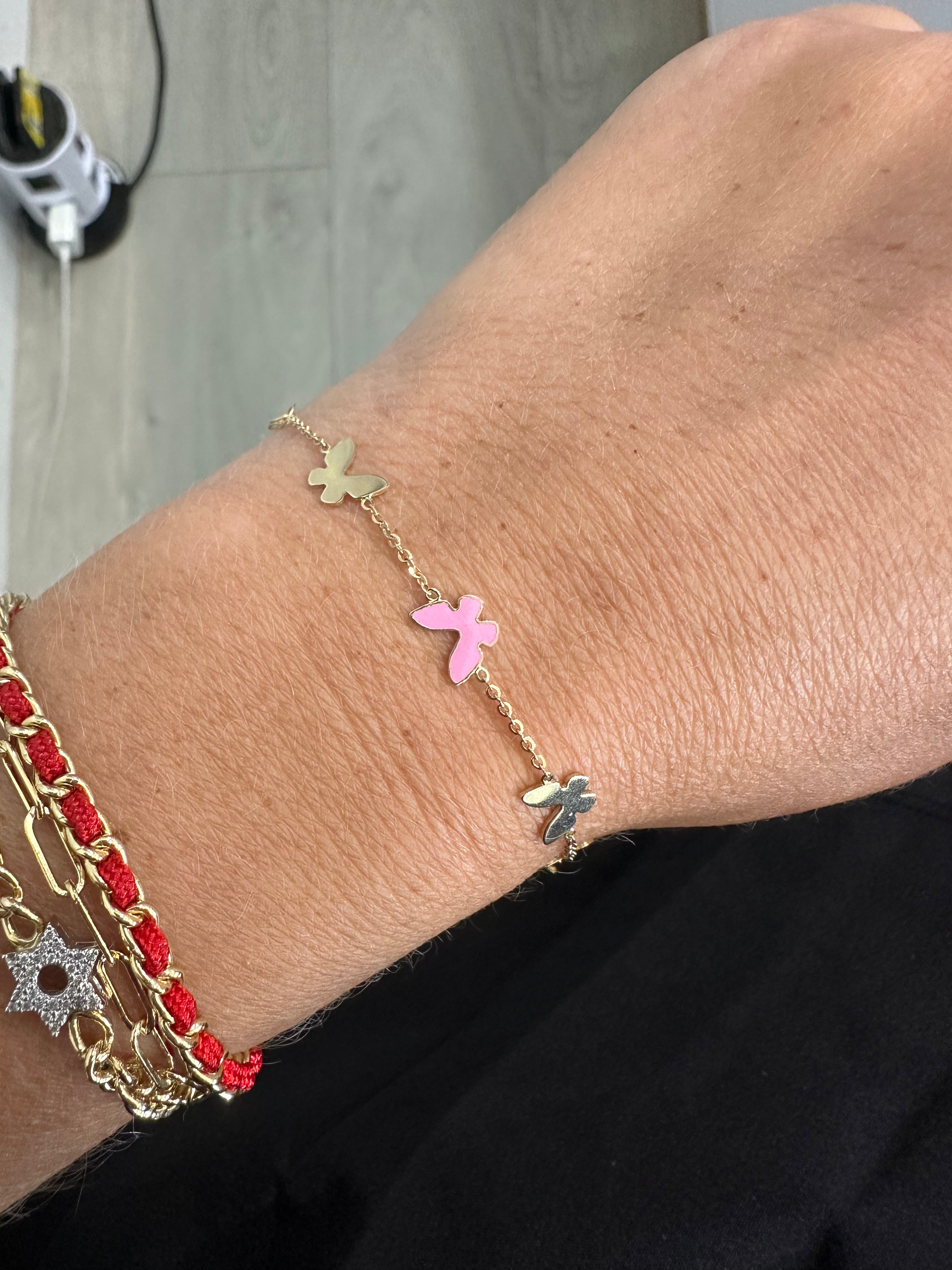 Gold & Pink Enamel 4 Butterfly Bracelet