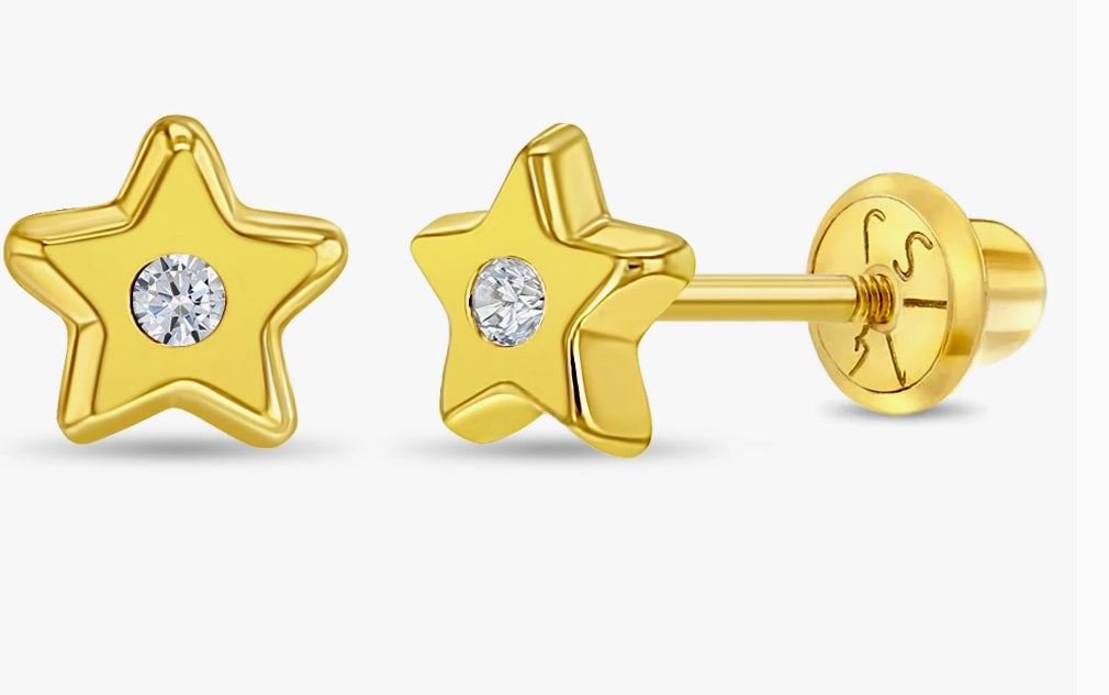 -Earring Size: 5mm star, (clear) round cubic zirconia; 8mm threaded earring post -Main Stone: Clear Cubic Zirconia -Metal Stamp: 14k