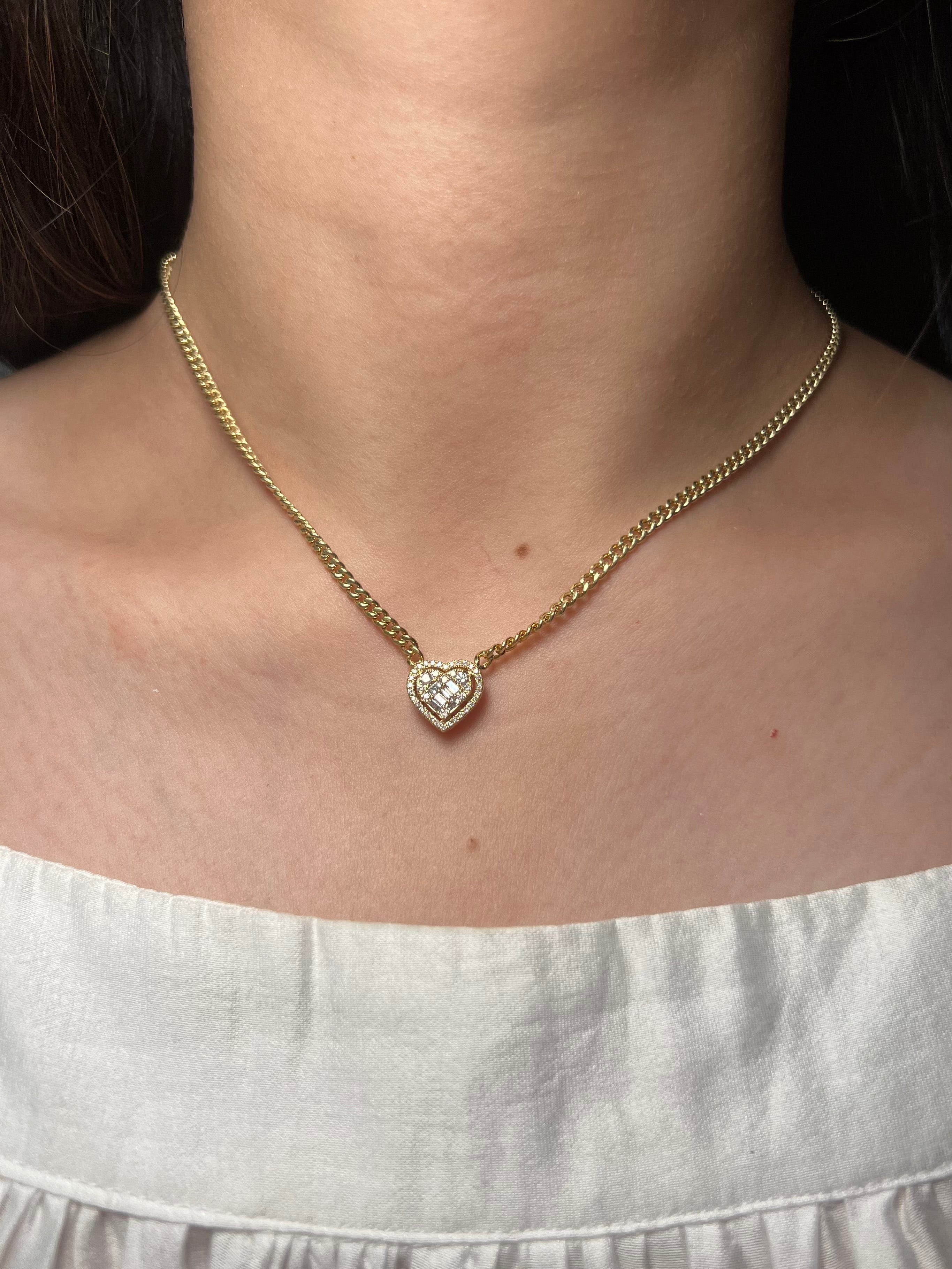 Heart Shape Pendant on 14k Yellow Gold Cuban Necklace