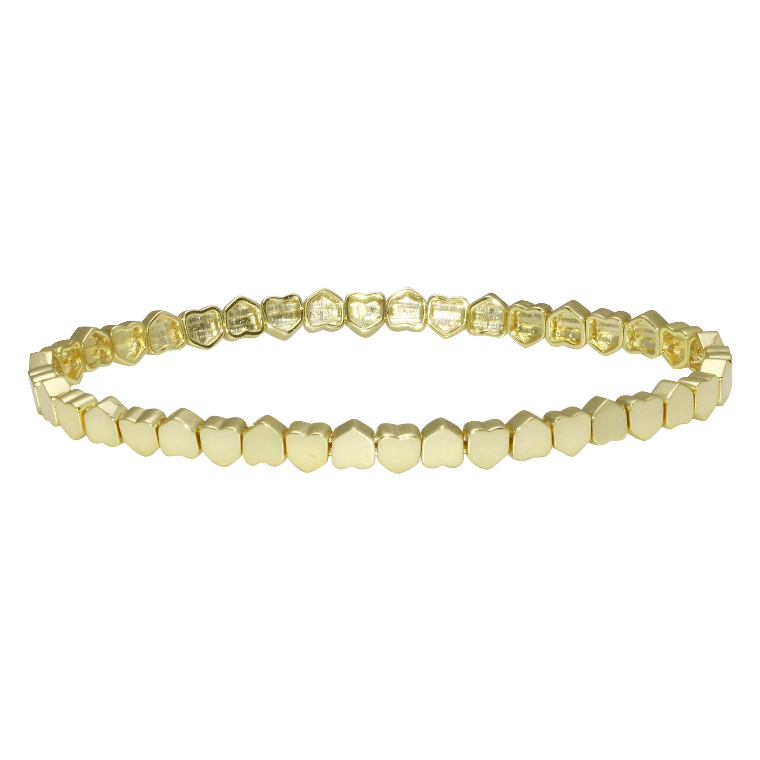 Details: 18k gold plated over brass Double elastic wire 7 inches Hearts: 5 mm