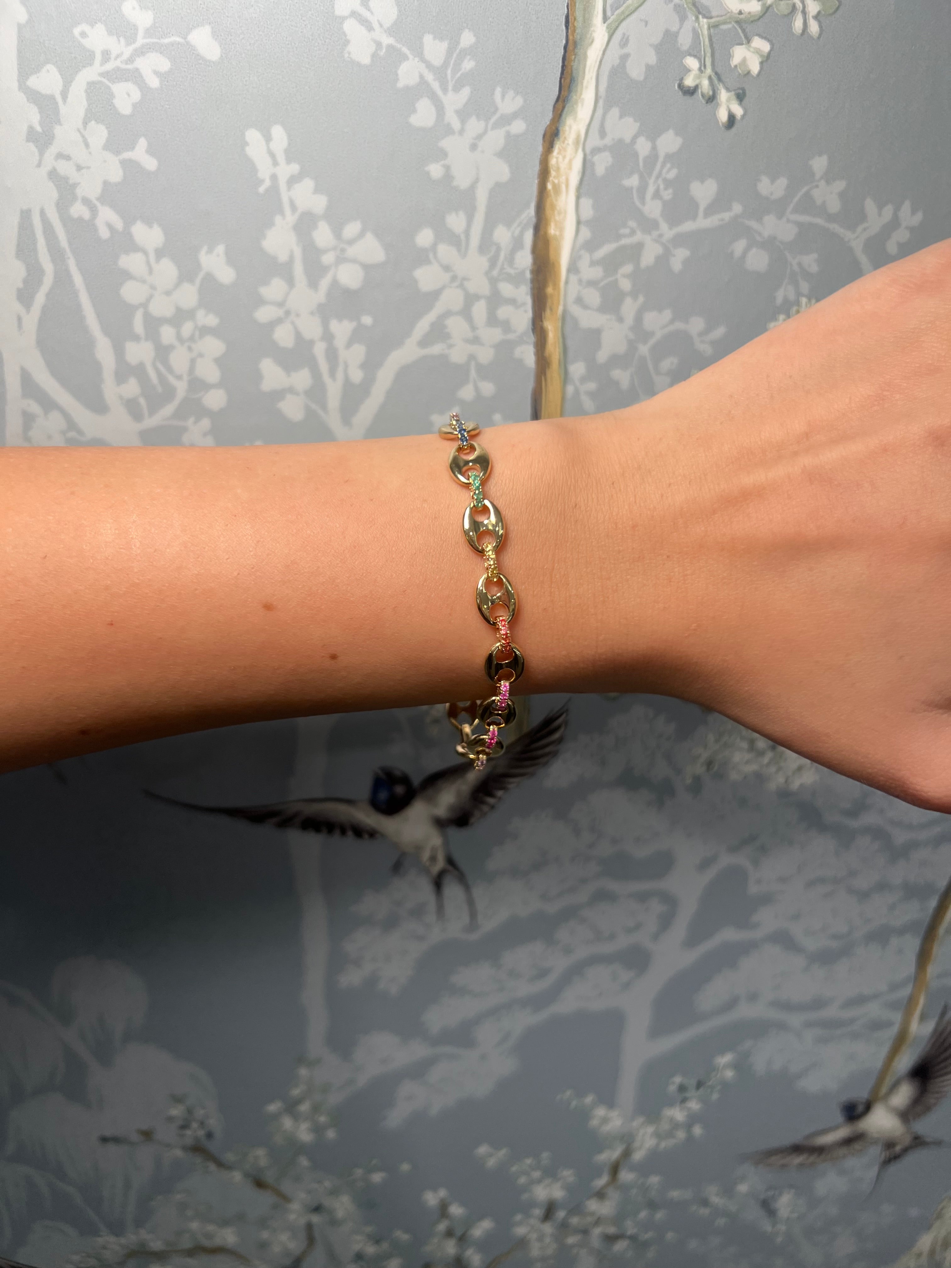 RAINBOW COLOR DIAMOND LINK BRACELET