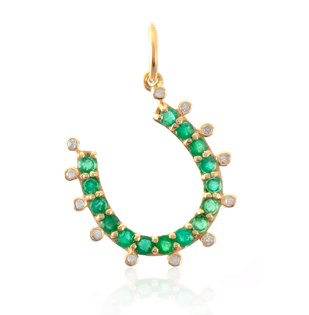 Semi Precious Emerald Diamond Horseshoe Charm Pendant