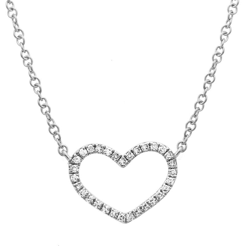 Small 14k White Gold Open Heart Diamond Necklace