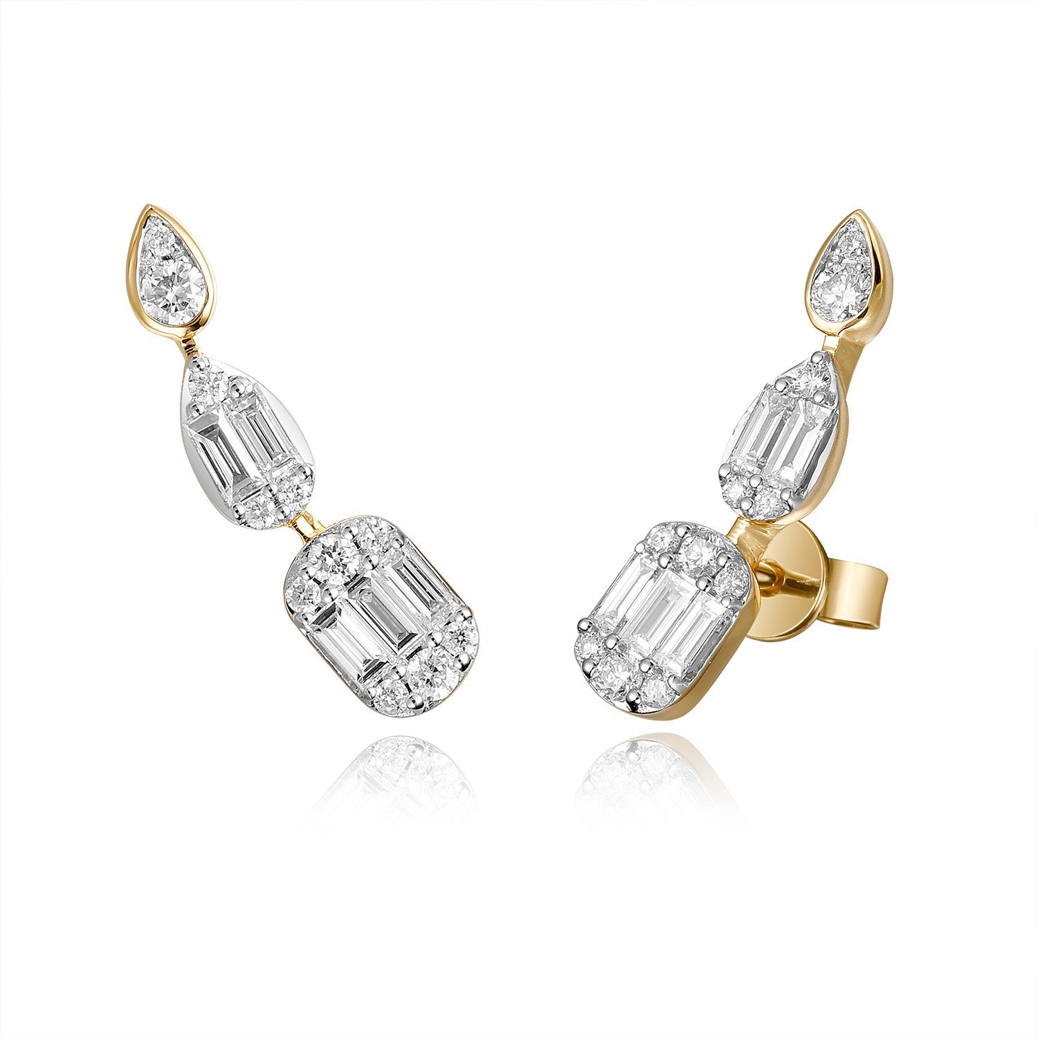 Triple Stone Bezel Crawler Earrings