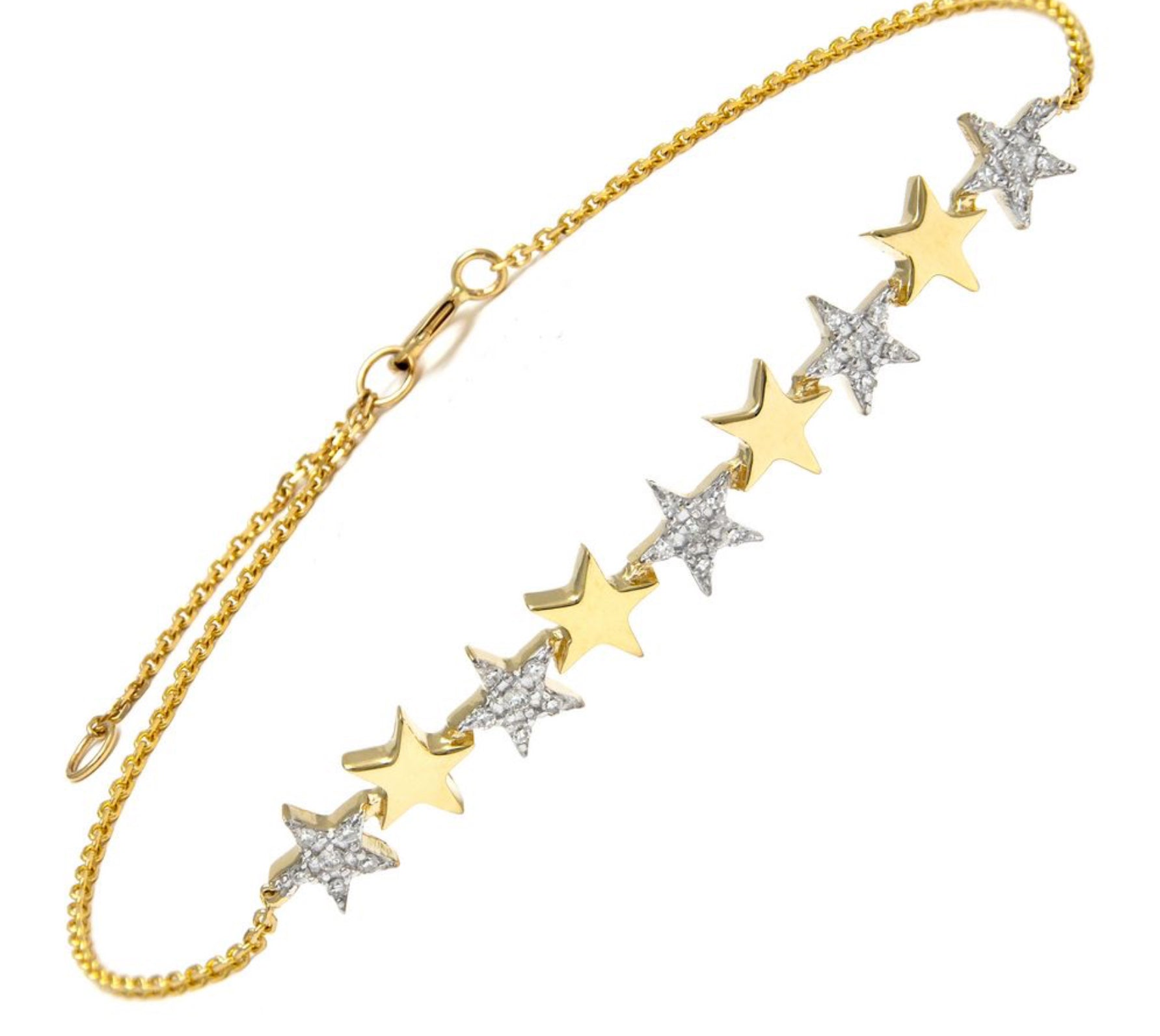 Yellow Gold Star Single Micro Pave Diamond Bracelet