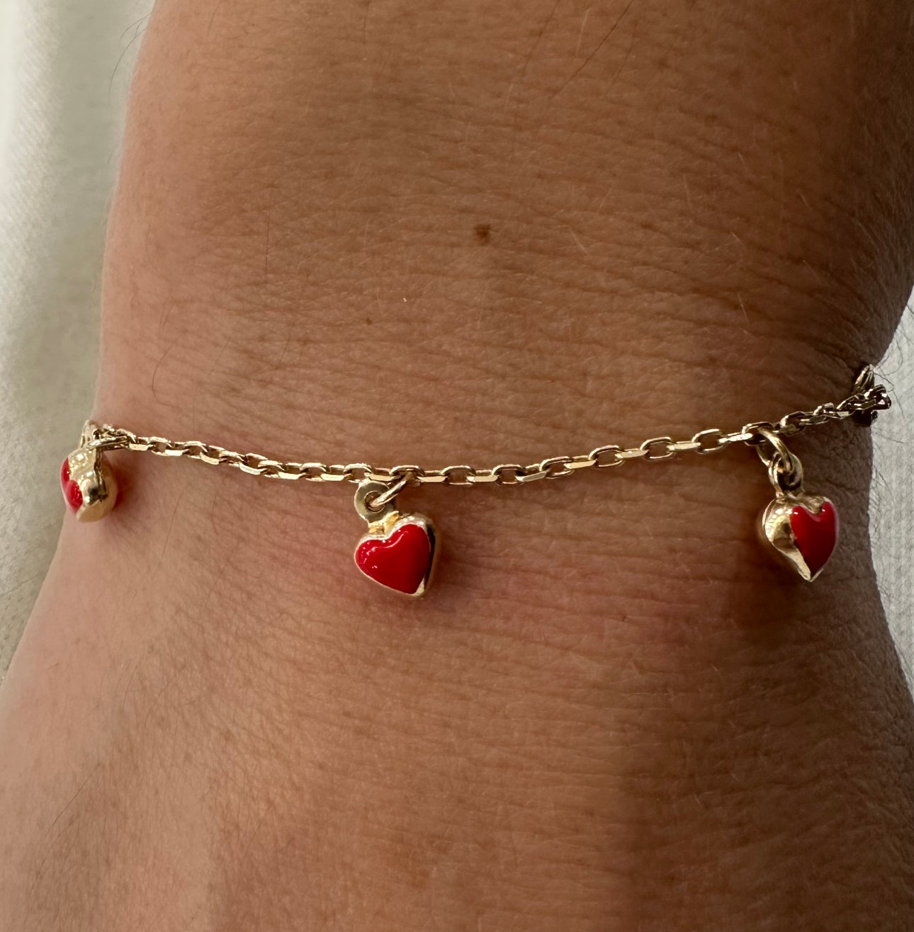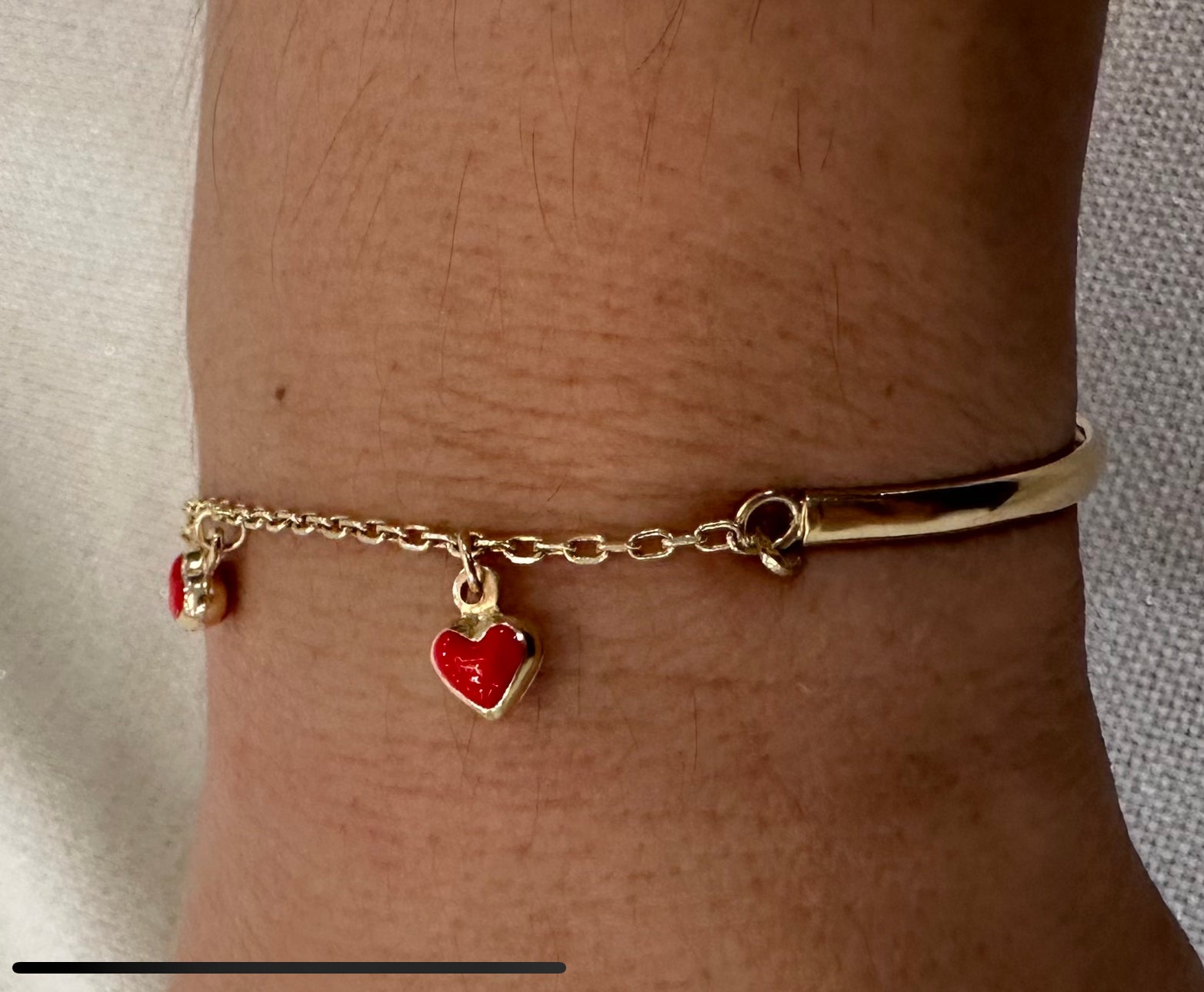 1/2 bracelet 1/2 bangle with 3 red hearts
