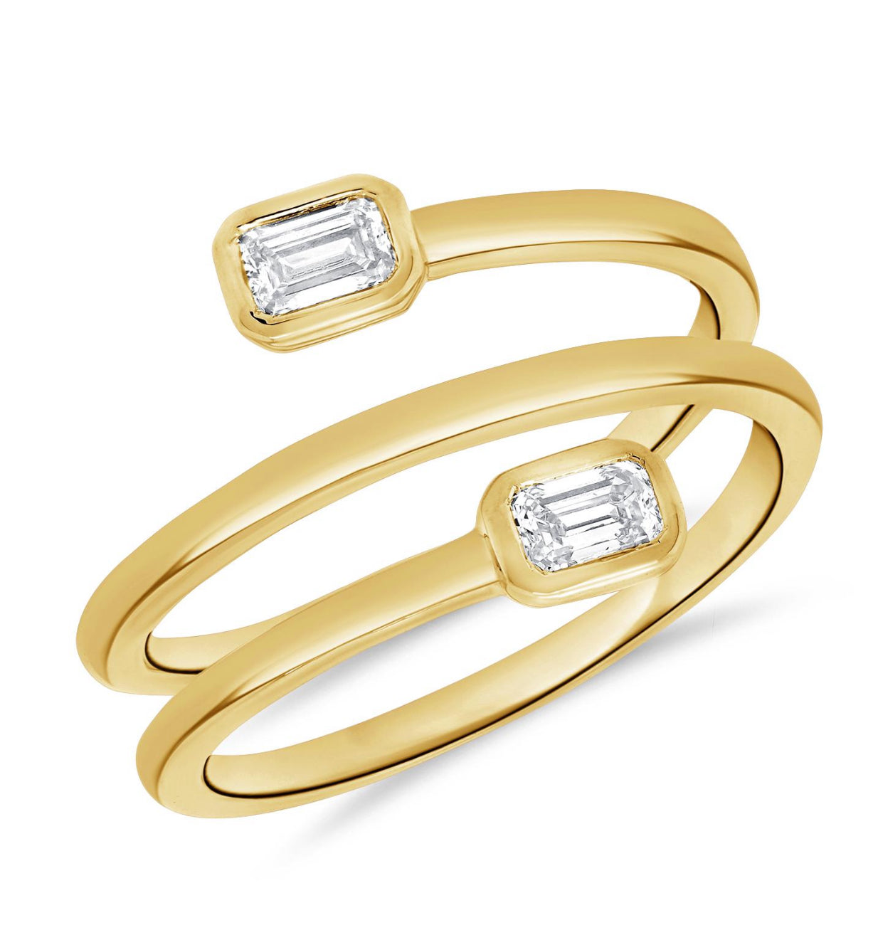 14k Yellow Gold Wrap Around Ring with Two Bezel Diamonds